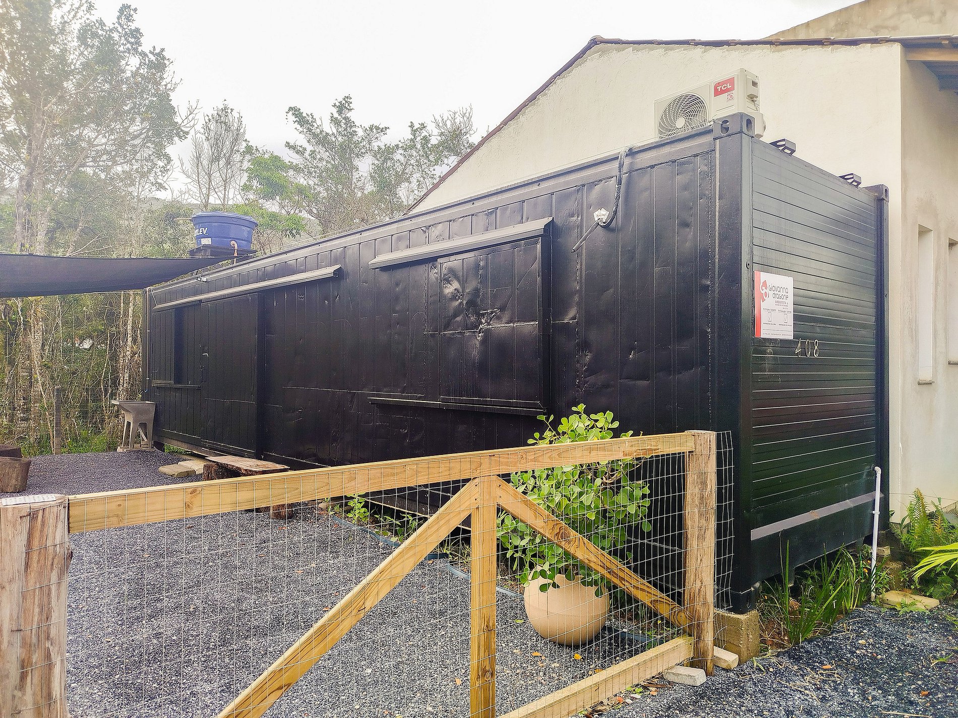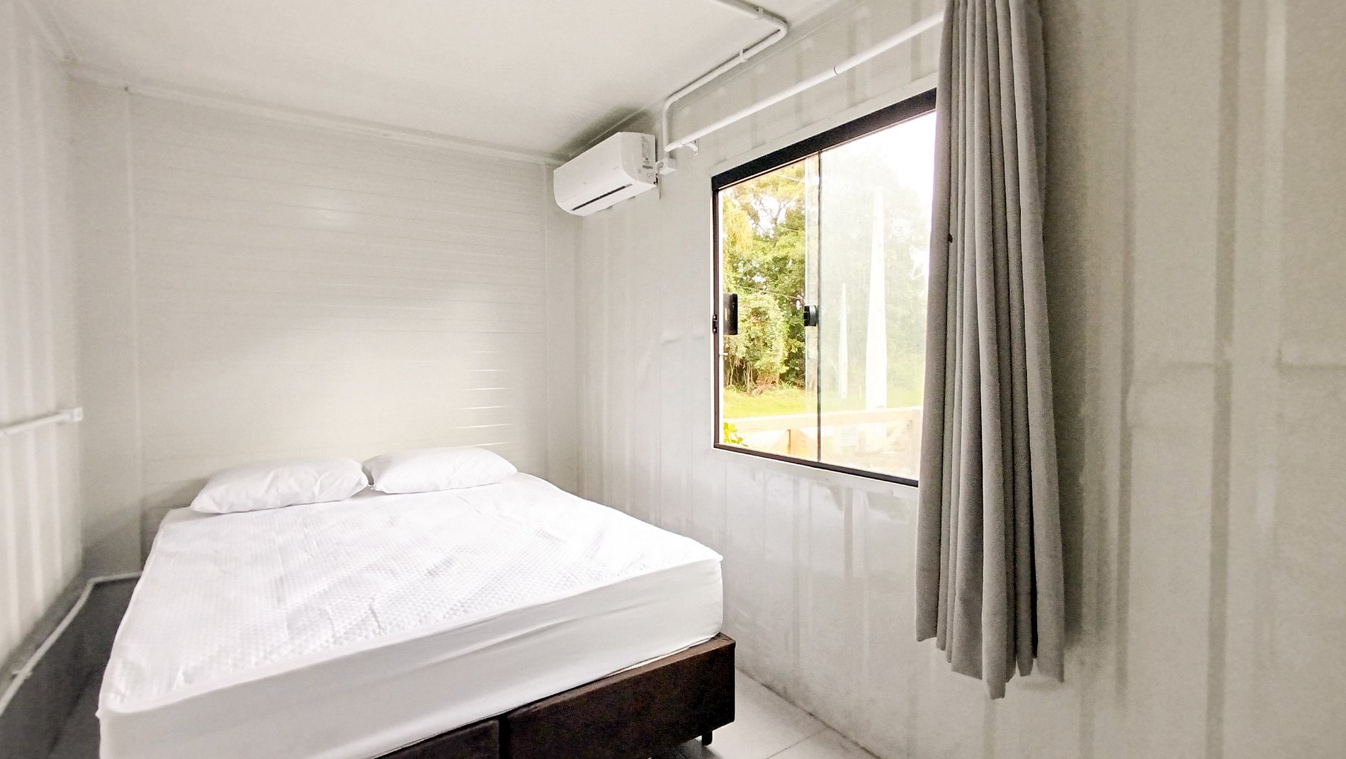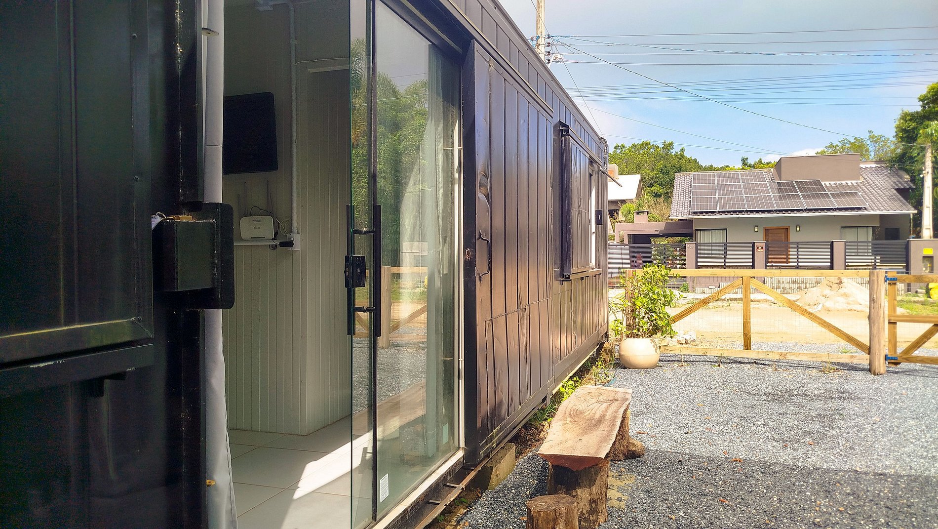 Localizada em local de tranquilidade e calma, esta hospedagem divide terreno com outro container com linda vista para o morro de Mariscal