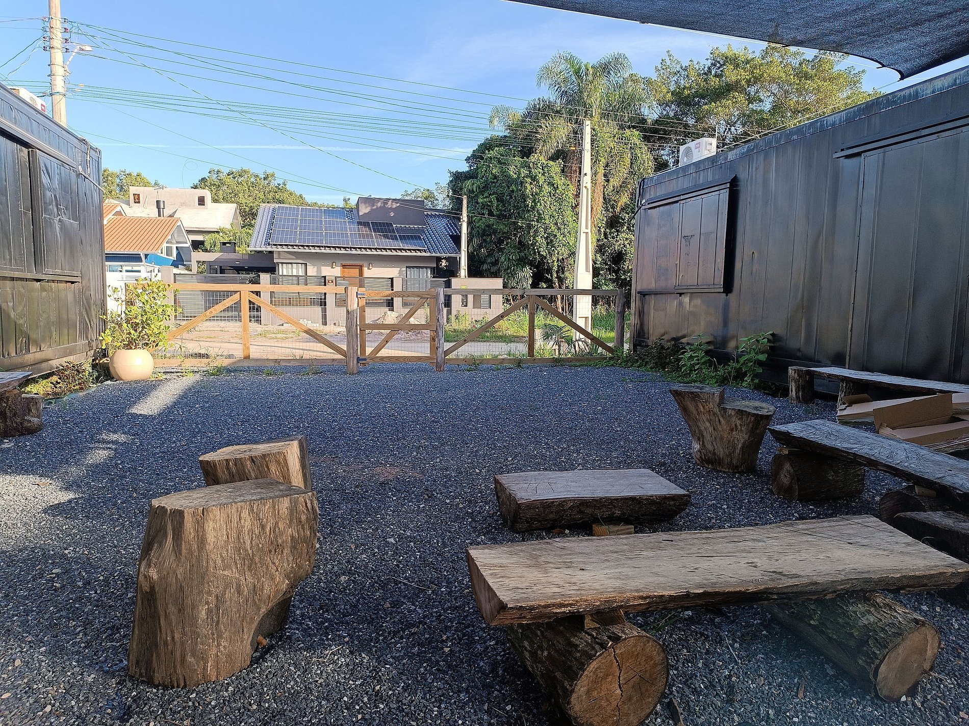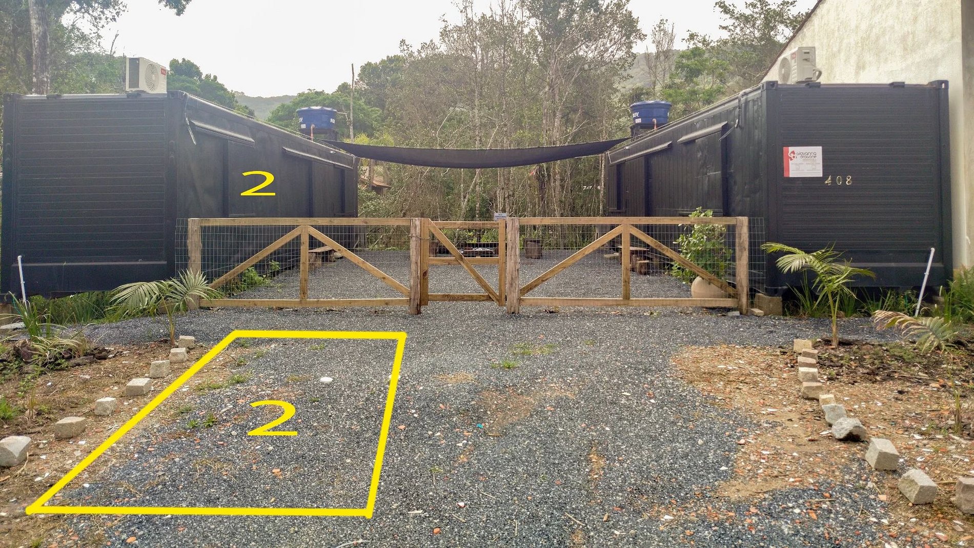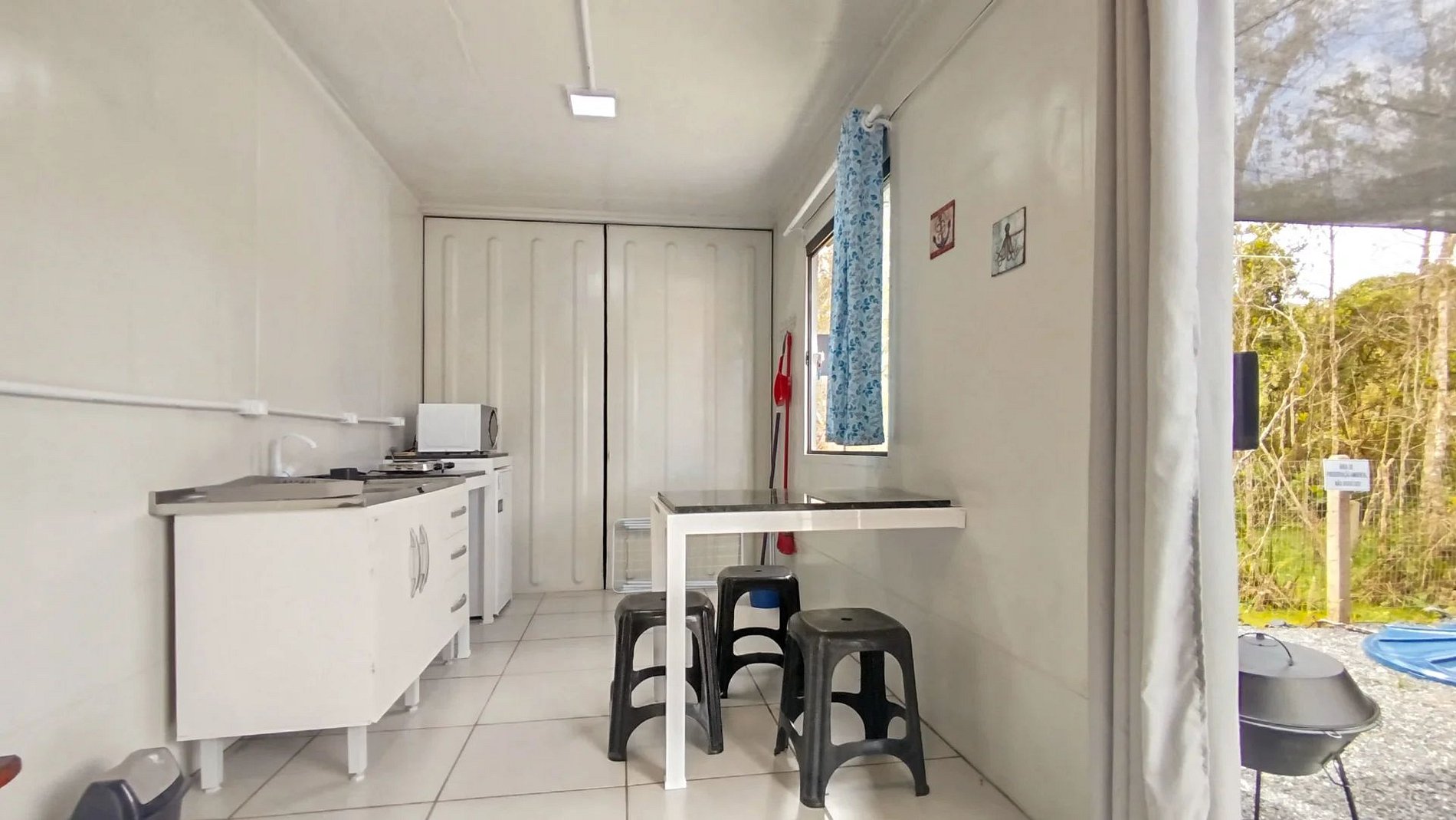 Localizada em local de tranquilidade e calma, esta hospedagem divide terreno com outro container com linda vista para o morro de Mariscal