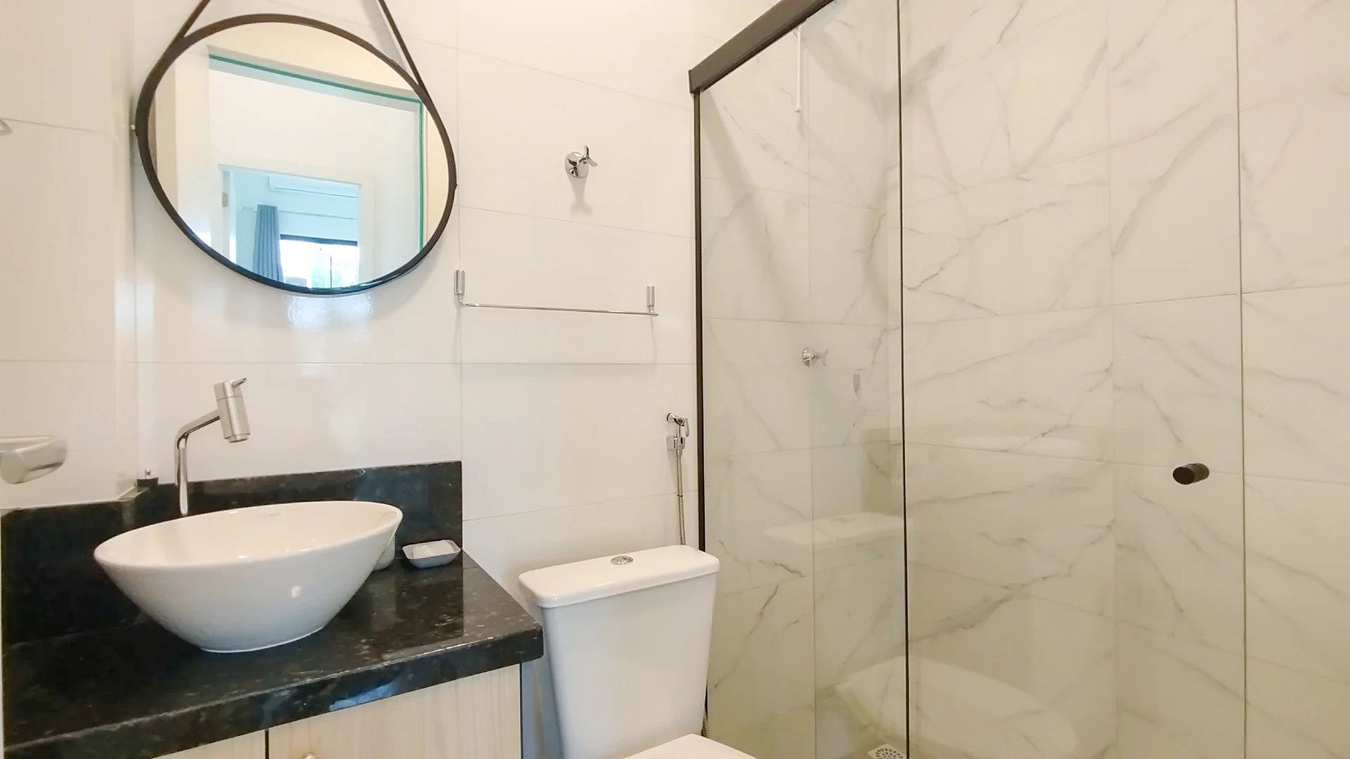A acomodação possui ampla área externa com piscina comum, vista impressionante para as montanhas da praia de Mariscal.