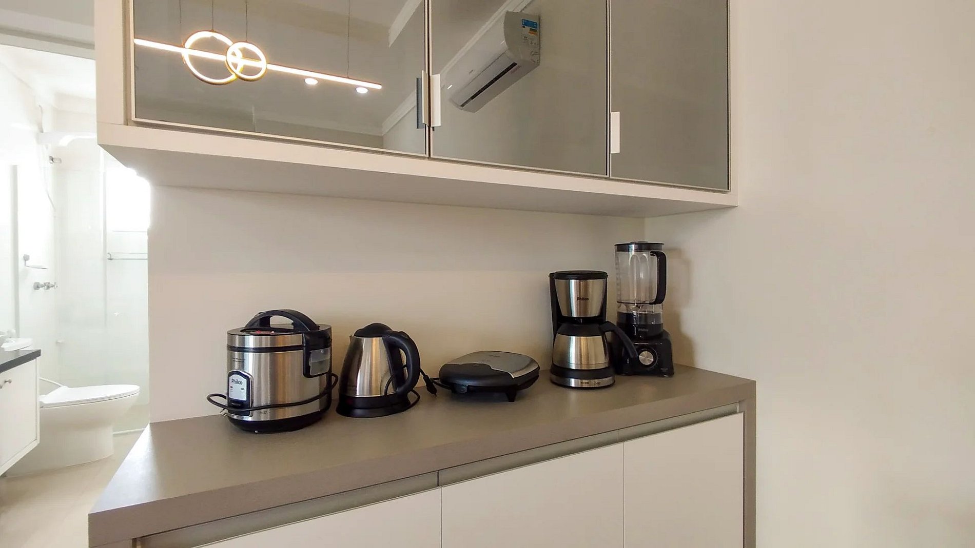 O condominio oferece vagas duplas para cada apartamento, tamben tem lockers para accesorio de praia.